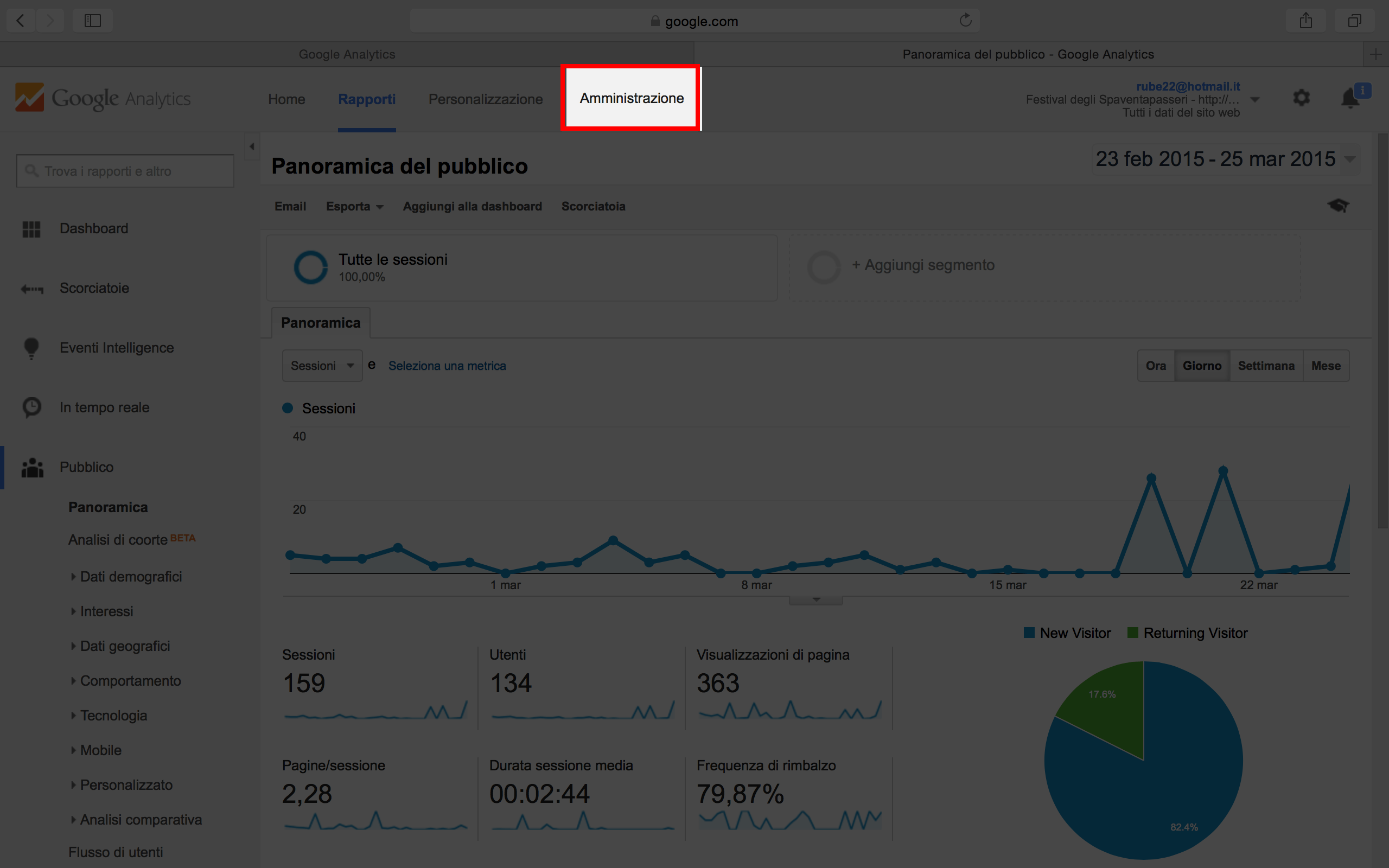Qui, dobbiamo poi cliccare sul sito da “aggiustare”. Quando ci si sarà aperta la schermata simile a quella dell’immagine sottostante, dobbiamo poi cliccare sul menu > Amministrazione .